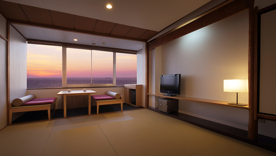 「日本の夕日百選」選定・北条海岸の目の前に建つ、「夕日海岸 昇鶴」。