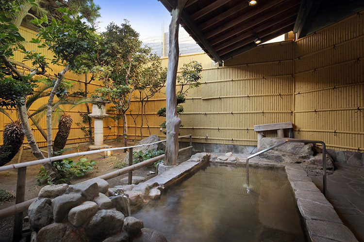 温泉を引き入れた御影石の内湯と、開放的な石造りの露天風呂でゆったり、のんびり。