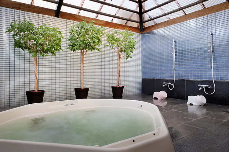 カラダの疲れをやさしくほぐすジャグジーと、温泉を引き入れた御影石の内湯が楽しめます。